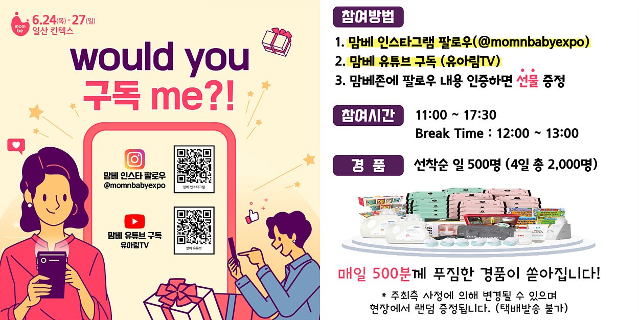 맘앤베이비 엑스포 SNS 구독 이벤트 안내