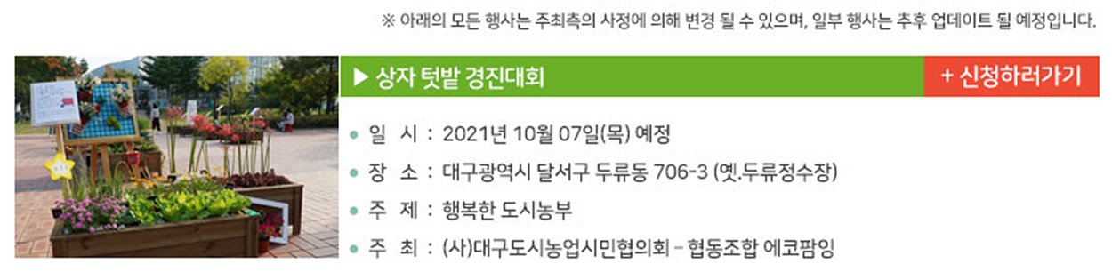 대구 도시 농업 박람회 2021 부대 행사 안내
