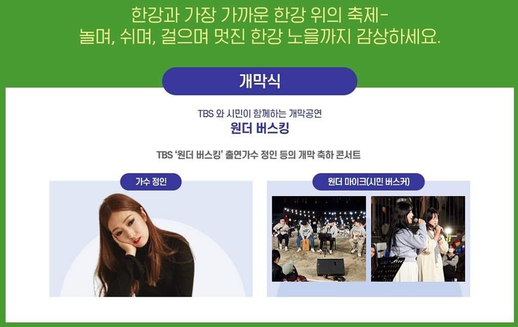 - TBS '원더 버스킹' 출연 가수 정인 등의 개막 축하 콘서트