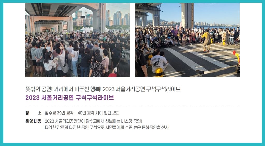 - 2023 서울 거리 공연단이 잠수교에서 선보이는 버스킹 공연