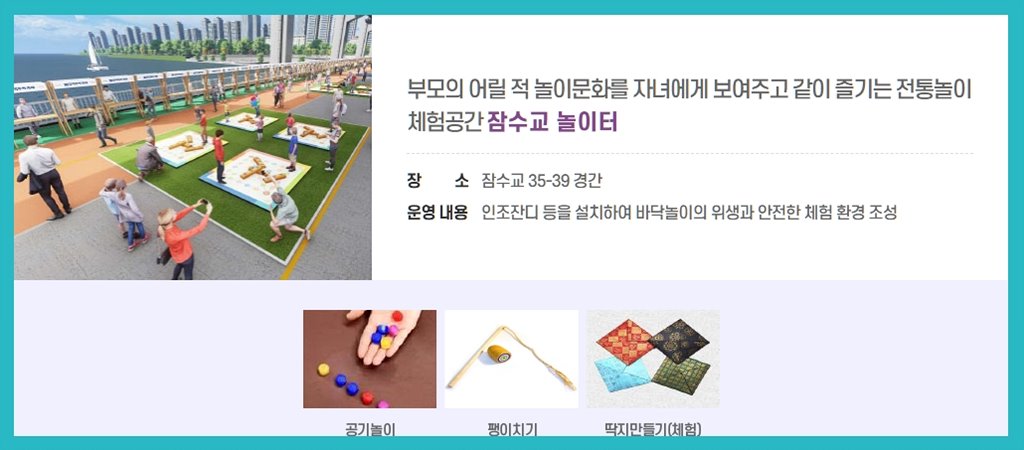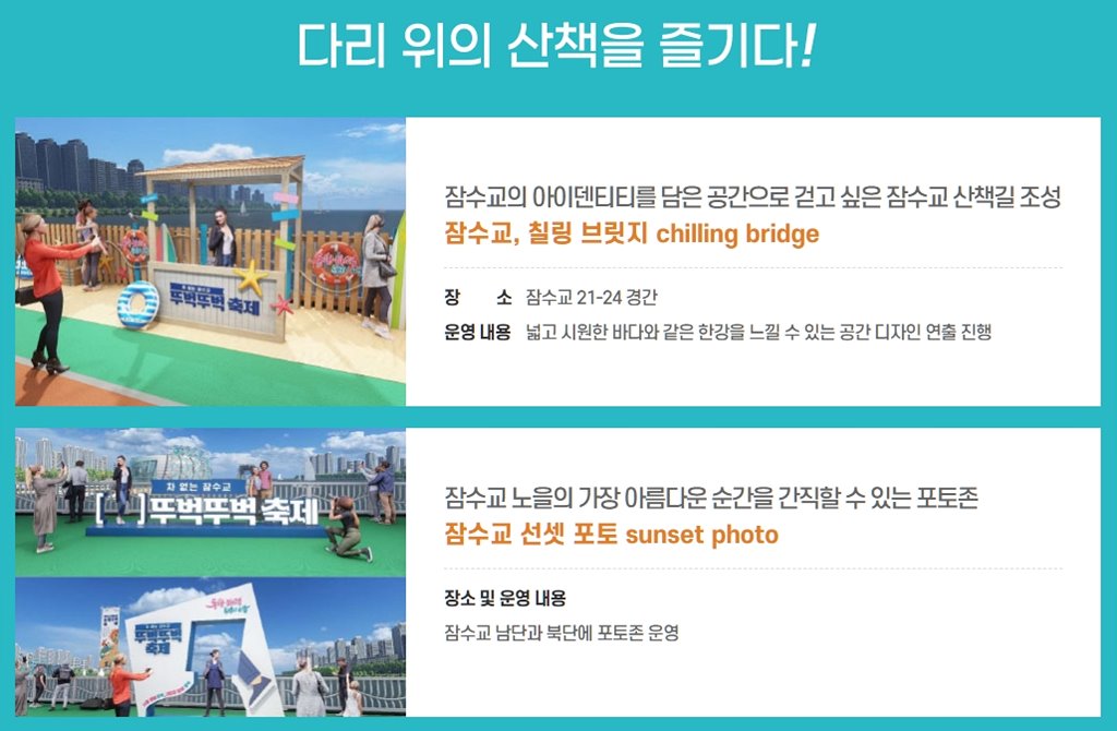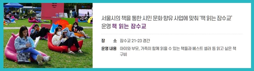 - 서울시의 책을 통한 시민 문화 향유 사업에 맞춰 '책 읽는 잠수교' 운영