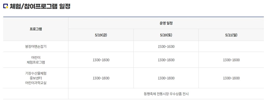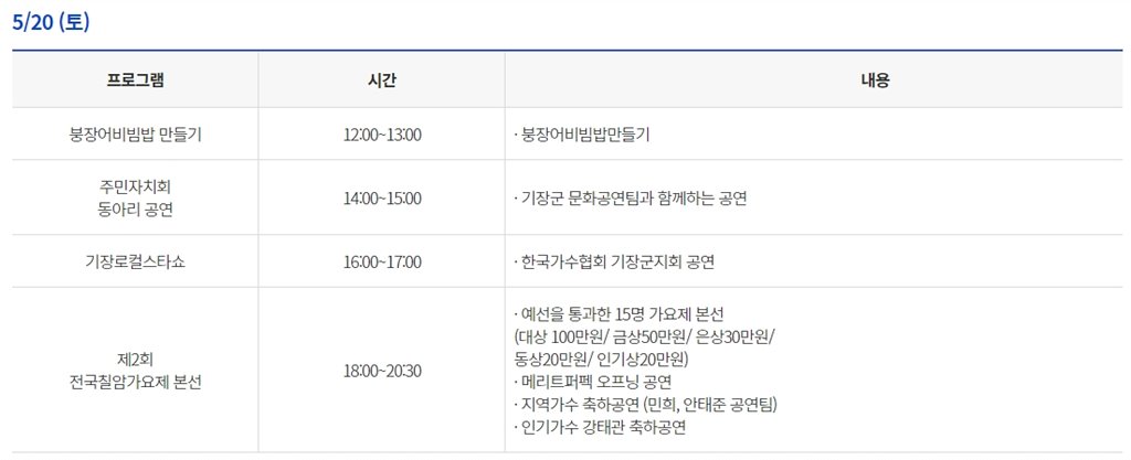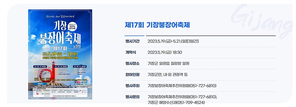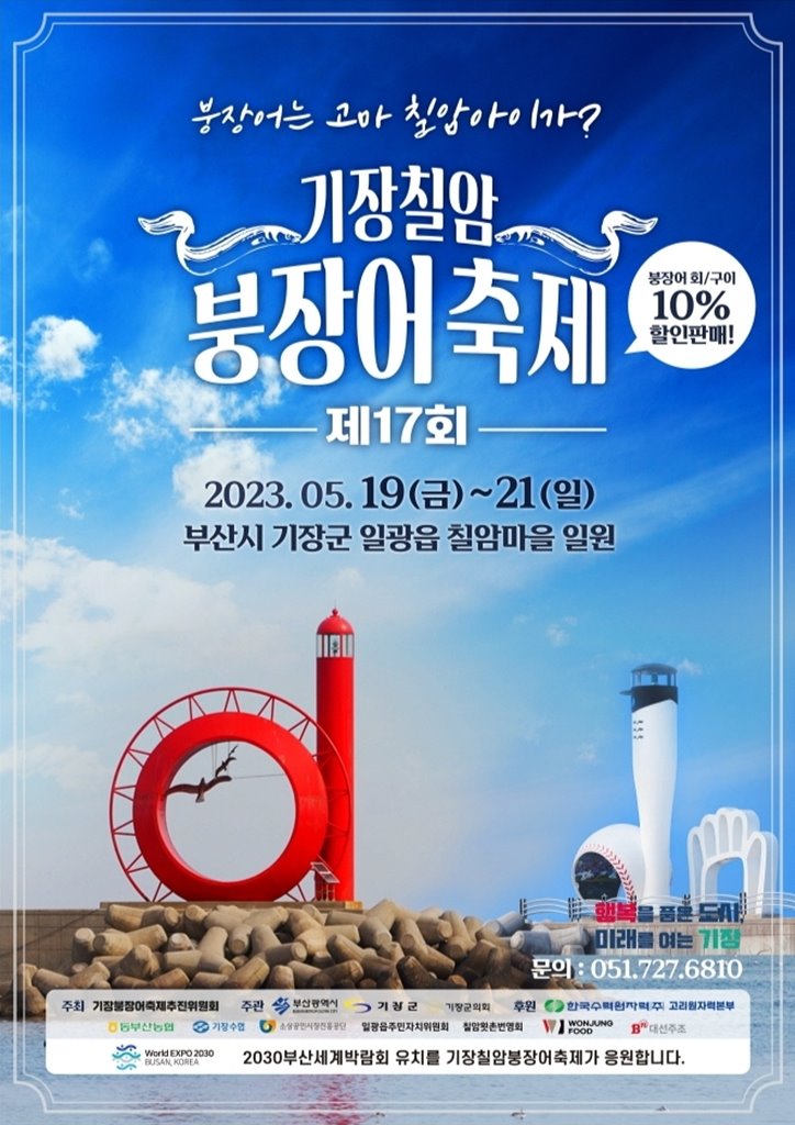 안녕하세요. 오늘은 2023년 5월 19일 금요일부터 2023년 5월 21일 일요일까지 3일간 부산광역시 기장군 일광읍 칠암항 일원에서 개최하는 2023 기장 붕장어 축제 일정 및 정보에 대해서 안내해드리려고 합니다.