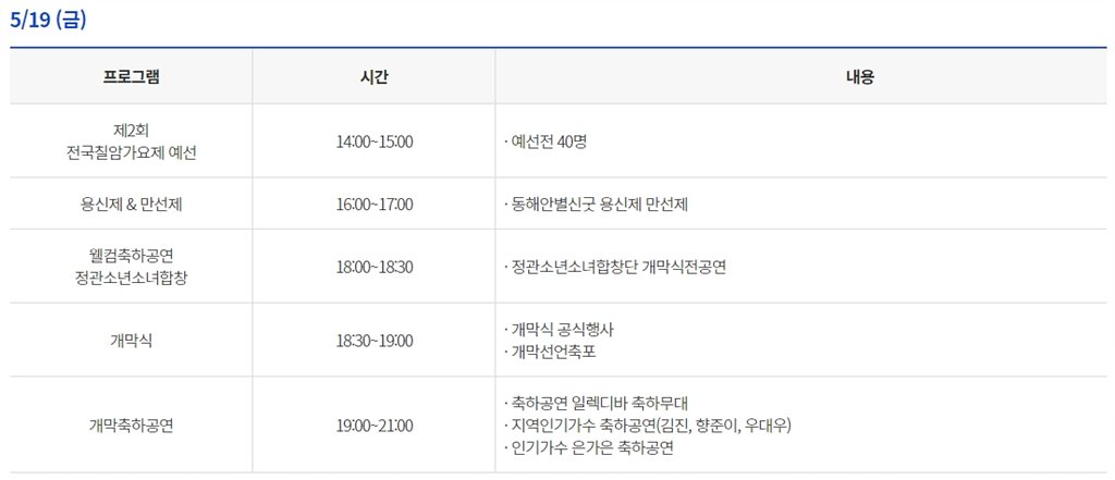 ※ 본 축제 정보는 작성일 기준으로 작성된 정보로 이후 내용이 수정될 수 있으니 꼭 전화 문의 및 홈페이지 확인 후 방문하시길 바랍니다.