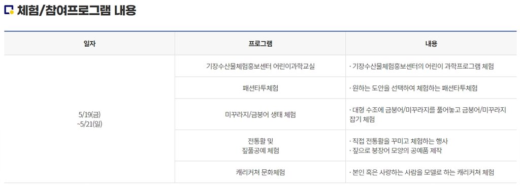 - 기장 수산물 체험 홍보 센터의 어린이 과학 프로그램 체험