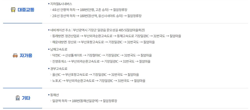 - 부산광역시 기장군 일광읍 문오성길 485-5 칠암 마을