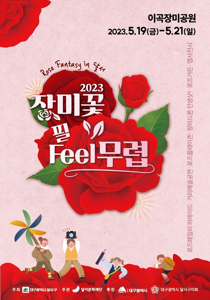 장미의 계절! 대구 이곡장미공원에서 "로즈 판타지 인 달서"라는 주제로 [장미꽃 필(Feel) 무렵] 축제가 개최합니다. 다양한 거리 예술 공연과 체험 프로그램이 준비되어 있으니 관심 있으신 분들은 가족, 연인, 친구들과 방문해 보시는 것을 어떠실까요?