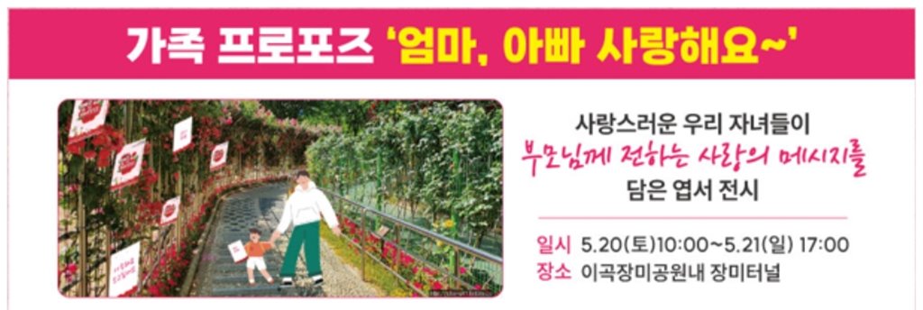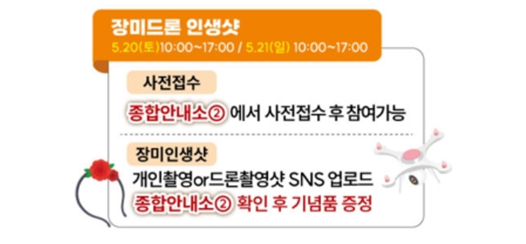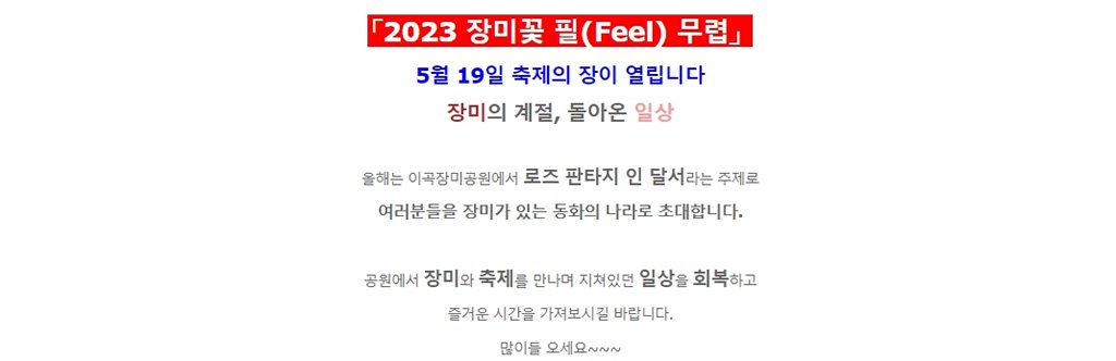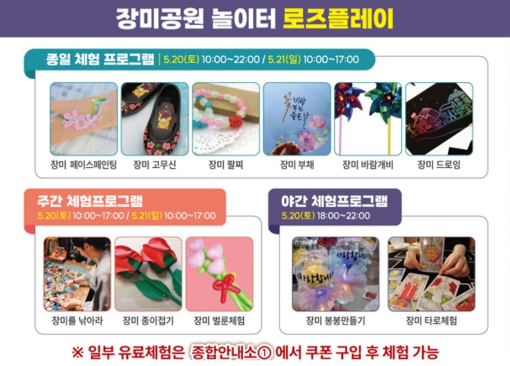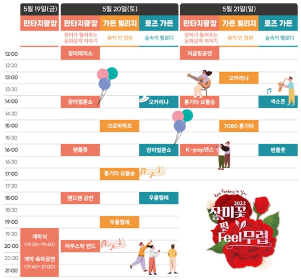 - 공원에서 장미와 축제를 만나며 지쳐있던 일상을 회복하고 즐거운 시간을 가져보시길 바랍니다.