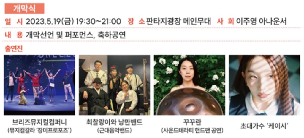 - 2023년 5월 19일 금요일 축제의 장이 열립니다.